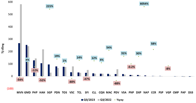 Lãi ròng quý 3/2023 của các doanh nghiệp logistics